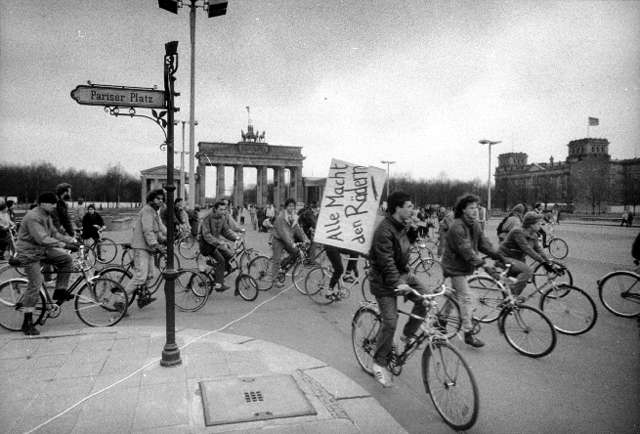 Ost-Berlin: Auf einer Fahraddemo werden Tempo 30 in Wohngebieten und markierte Fahhradstreifen auf den Fahrbahnen gefordert. © Andreas Kämper
